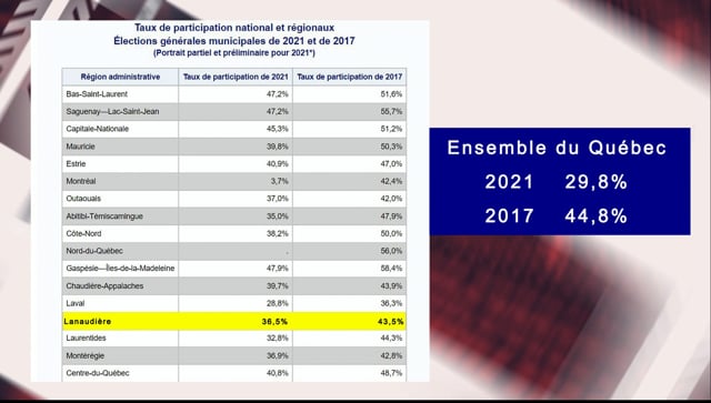- L’homme de Terrebonne disparu hier a été retrouvé - Résultats électoraux et taux de participation - Chronique politique de Mathieu Bélanger - Entrevue avec Sébastien Nadeau, maire de L’Assomption - Campagne 12 droits des usagers